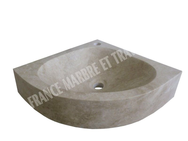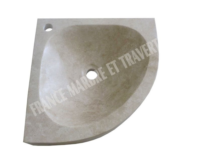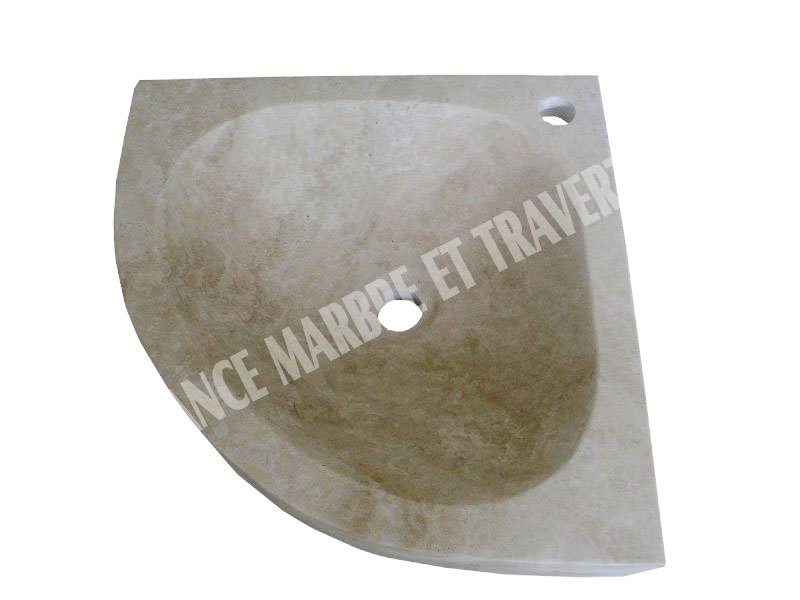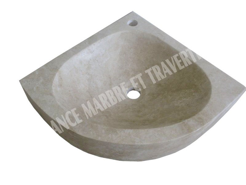 Travertin Beige Vasque Lave Main Angle Eclaté 45x45 cm