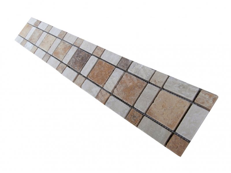 Travertin Noce & Beige Frise KF-16 28x12 cm Épaisseur : 1 cm Qualité : 1’er Choix Finition : Antique & Vieilli