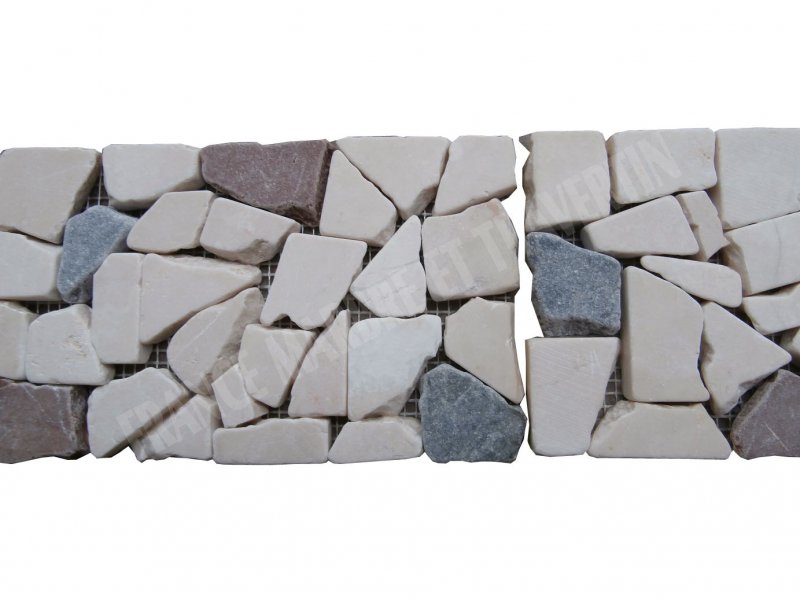 Marbre Frise Multicolore Opus Galet 30x7 cm Épaisseur : 1 cm Finition : Antique & Vieilli Qualité : 1’er Choix